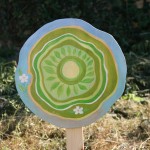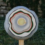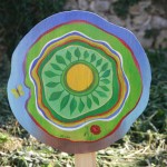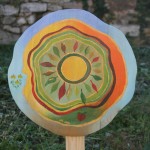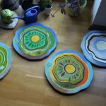 Die Baumscheiben haben wir zunächst geschliffen damit die Jahresringe sichtbar wurden. Diese dienten uns später bei der Bemalung als Orientierung der verschiedenen Farbkreise. Die Auswahl der Farben haben wir so gewählt, dass sie unser Empfinden für die verschiedenen Jahreszeiten wiederspiegeln.
